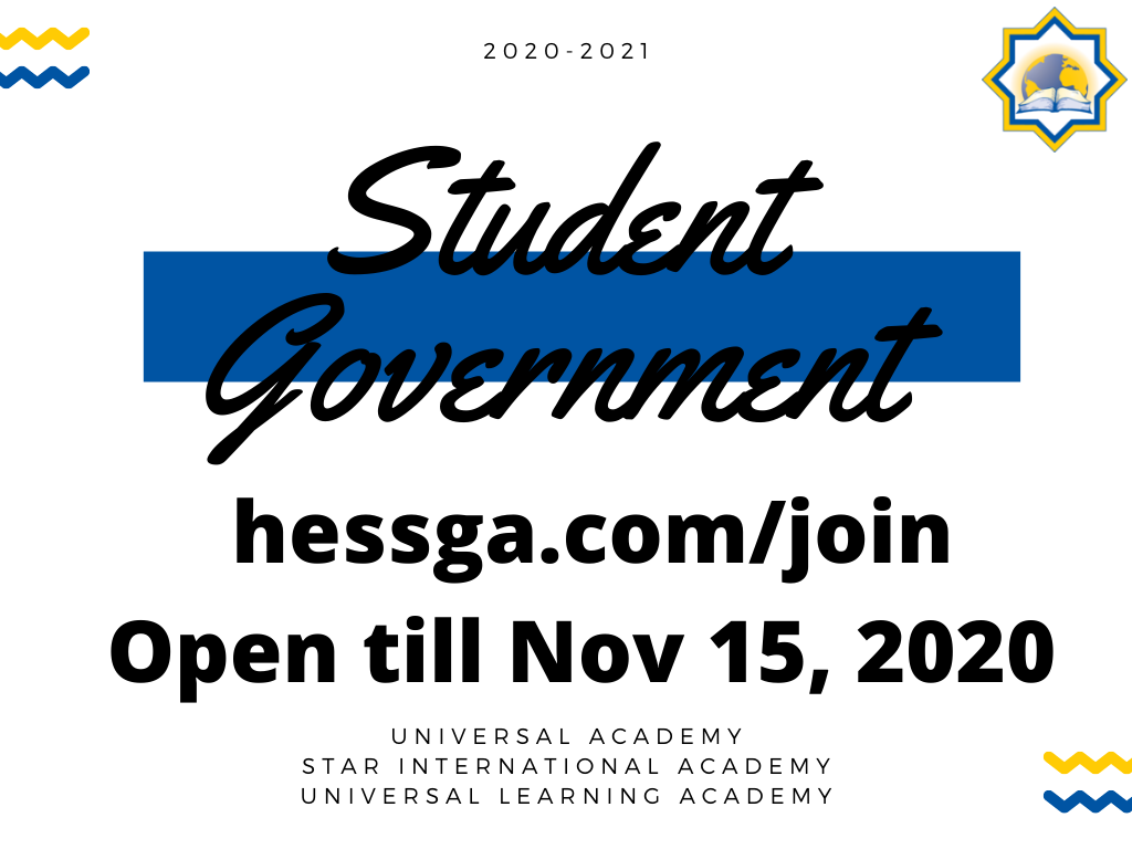 For students Grades 6-12, enrollment in Student Government is now open till November 15, 2020. Elections will take place on Tuesday, December 1, 2020.