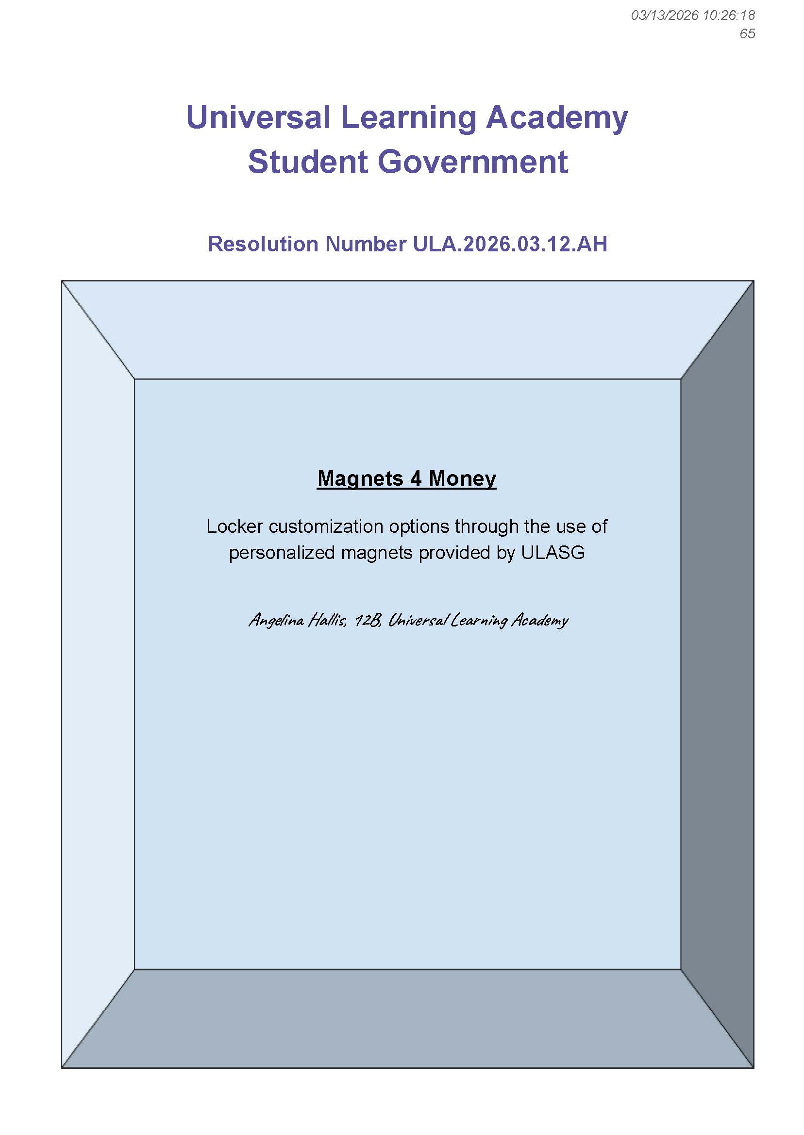 ULA Resolution Number ULA.2026.03.12.AH
