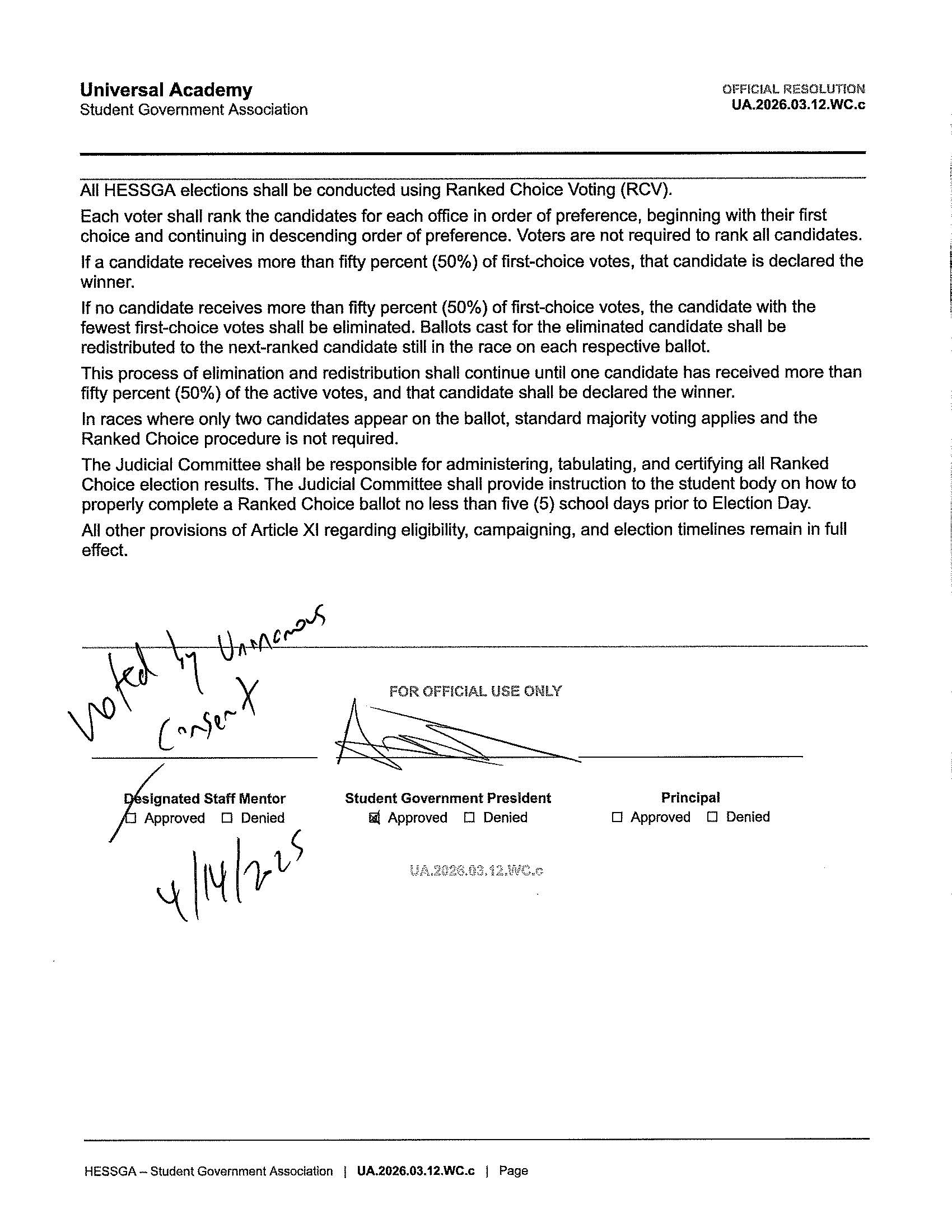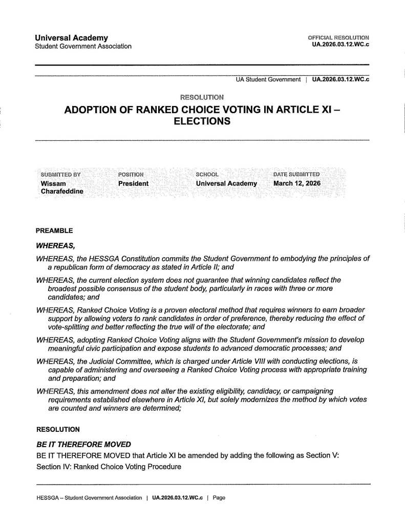 UA.2026.03.12.WC.C: UA Student Government adopts Ranked Choice Voting Unanimously